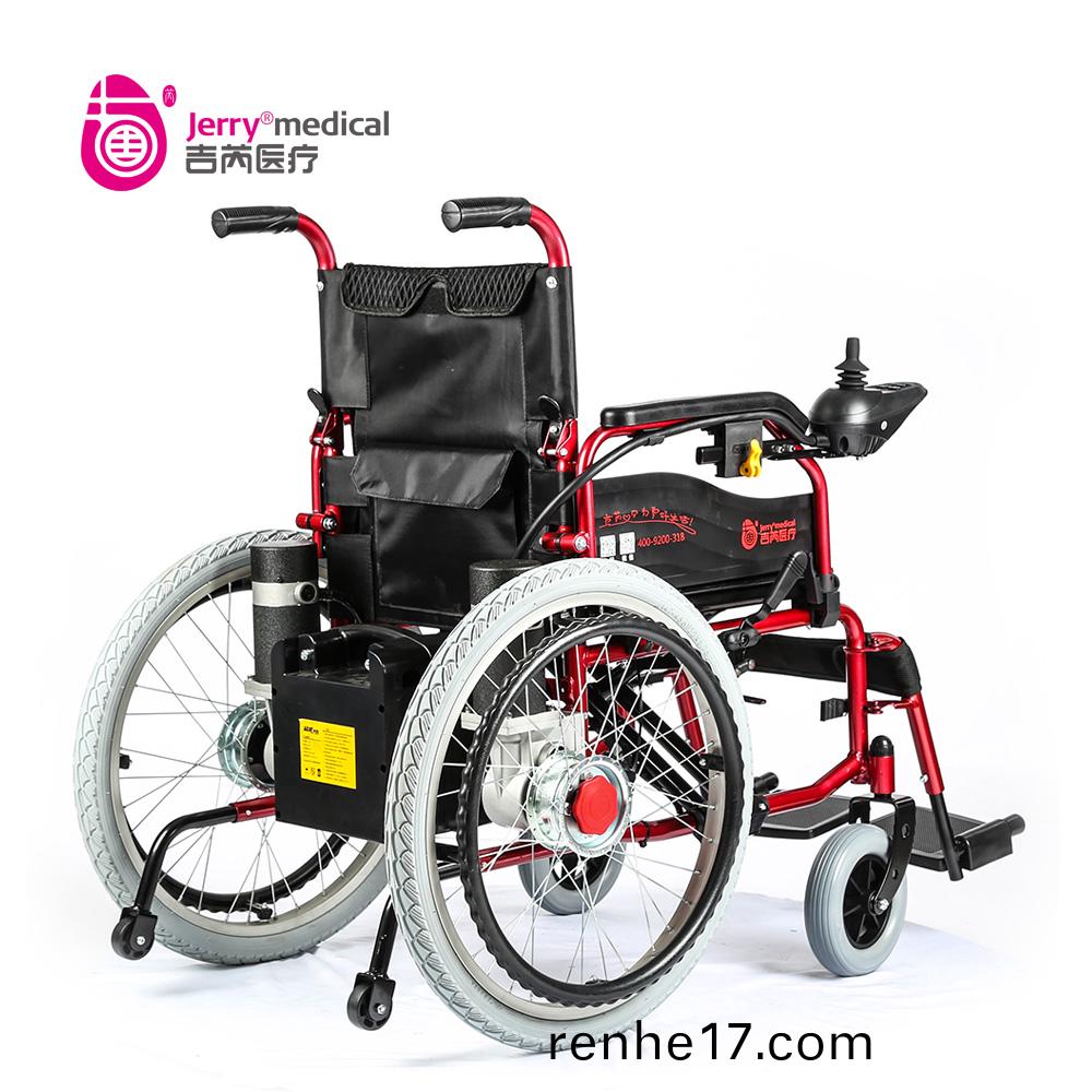 吉芮(rui)醫(yi)療(liao)電(dian)動輪椅,手動(dong)/電動(dong)兩(liang)用,可(ke)折疊(die),可(ke)掀扶(fu)手,可(ke)調節可拆(chai)卸(xie)跨(kua)腳(jiao),控(kong)製器左右(you)手(shou)可(ke)互換(huan),採用檯灣蝸(wo)輪蝸(wo)桿(gan)馬(ma)達,全自動電(dian)磁刹(sha)車(che)。
